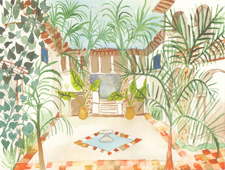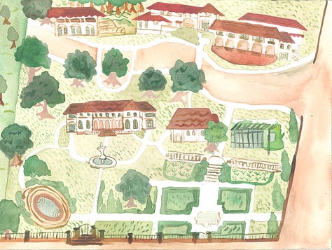 We decided to go a more classic route for her wedding suite- featuring watercolor illustrations of the property and a simple letterpress invitation with a serif font. Her wedding palette of greens, peaches, and creams perfectly suits her classic, clean taste. Differing from the blue eyes of the Hall family, Sarah has hazel eyes to accompany her olive skin and warm curls. These hues really do compliment her vibe- understated, observant, intelligent, and quietly elegant.