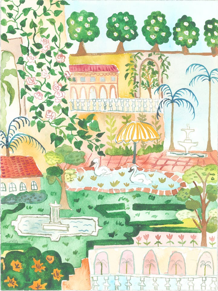 One of my favorite details was the die-cut fountain/garden illustration that rested on top of the invitation when opened. The details card was on the back!